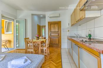 Iznad Kaštela se u smjeru zapad-istok proteže planina Kozjak. Kozjak se u dužini od 16 km proteže od Klisa na istoku do prijevoja Malačka na zapadu. Najviši vrh je Veli vrj (779 m). Biljni pokrov koji raste na južnim obroncima - lemprika, mirta, brnistra i planika – karakterizira mediteransku floru, dok na sjevernim obroncima...