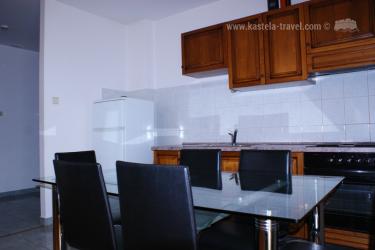 Apartman se nalazi u poslovno-stambenoj zgradi blizo centra Kaštel Kambelovca (150m). U prizemlju zgrade su kafići, banka, dućan i uredi. Apartman je orijetiran na sjeverozapad, suprotno od poslovnog dijela zgrade. Sastoji se od spavaće sobe s bračnim krevetom, kuhinje s dnevnim boravkom u kojem je kauč na razvlaćenje, kupaonice i terase s pogledom na okolite obiteljske kuće i vrh Kozjak. Parkirno mjesto je osigurano. Od poznate plaže "Baletna" udaljen je otprilike 350m.
