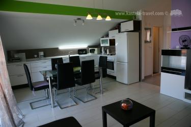 Apartman se nalazi u potkrovlju obiteljske kuće u Kaštel Kambelovcu. Ima jednu spavaću sobu, veliki dnevni boravak spojeni s kuhinjom i kupatili. S balkona je ppogled na more. Gostima je na raspolaganju vanjski gril.