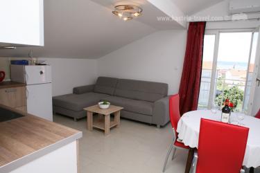Apartman se nalazi u potkrovlju obiteljske kuće u Kaštel Kambelovcu. Ima jednu spavaću sobu, veliki dnevni boravak spojeni s kuhinjom i kupatili. S balkona je ppogled na more. Gostima je na raspolaganju vanjski gril.