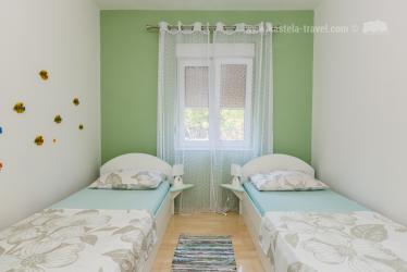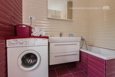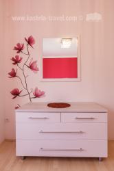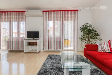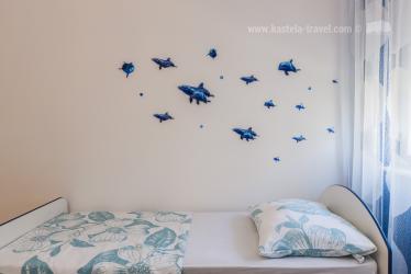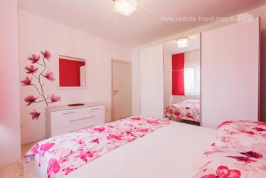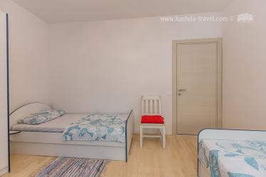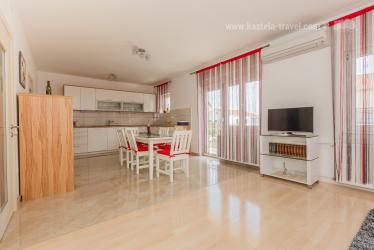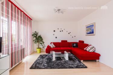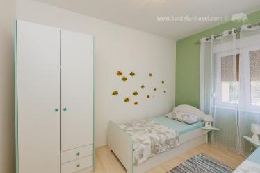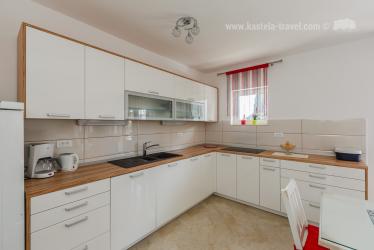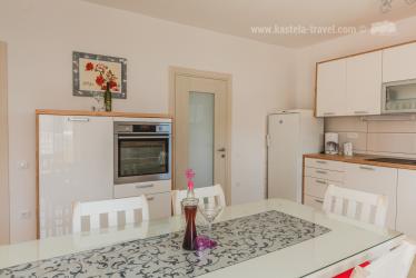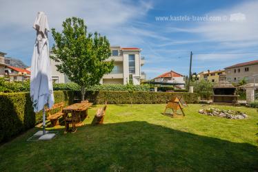 Kuća se nalazi u Kaštel Lukšiću samo 120 metara od šljunčane plaže pogodne za djecu. Apartman je na prvome katu obiteljske kuće i sastoji se od dvije dvokrevetne sobe a jedne trokrevetne sobe. Ima dva kupatila a veliku kuhinju s dnevnim boravkom. Gostima je na raspolaganju vrt sa sjenicom.