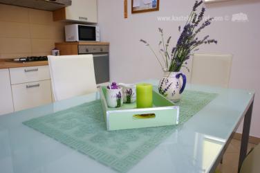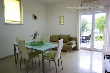 Kuća se nalazi u Kaštel Starom u blizini centra. Apartman se nalazi u prizemlju, sastoji se od jedne spavaće sobe s bračnim krevetom i kuhinje s dnevnim boravkom u kojem se nalazi kauč na razvlačenje za dvije osobe. Ispred apartmana je velika terasa s površinom od 15 četvornih metara, gdje možete uživati u omiljenoj šalici kave. Kuća je od nabližše šljunčane plaže udaljena 300 metara. Preporučamo posjetiti povijesni grad UNESCO-va grada Trogira.