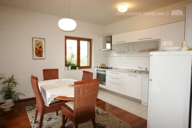 Apartman Mira nalazi se na prvom katu obiteljske kuće s prostranim vrtom i maslenikom. Apartman se sastoji od dvije spavaće sobe, kuhinje s prostranim dnevnim boravkom, kupaonice i balkonom s pogledom na vrt. Parkirno mjesto je osigurano u dvorištu kuće.