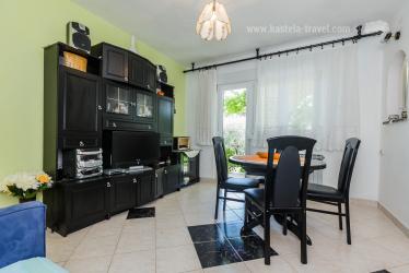 Kuća se nalazi u Kaštel Novome, apartman je kompletno opremljen, ima dvije spavaće sobe, kuhinju s dnevnim boravkom, kupatilo. Vlasnici ne žive u kući, te gosti su u kući sami. Gostima je na raspolaganju i vanjski roštilj.