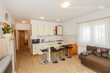 Kućca se nalazi u KAštel Novom, 500 od šljunčane plaže Gabine. Apartman se nalazi na prvom katu obiteljske kuće, sastoji se od dvije spavaće sobe, kupatila i dnevnog boravka. Ima balkon a gostima je na raspolaganju i vanjski gril.