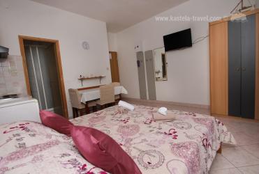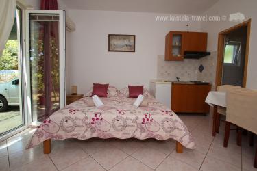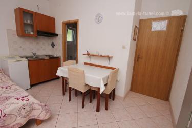 Studio apartman u prizemlju je potpuno uređen i opremljen za sve potrebe gostiju. Svi apartmani u objektu imaju funkcionalno opremljenu kuhinju s priborom i uređajima, WC-kupatilo s mogućnošću pranja robe, i svaki apartman ima svoju terasu s opremom. Kraj kuće se nalazi veliki parking i prostor za igru djece. Svi gosti mogu koristiti veliki gril (roštilj) u dvorištu kuće.