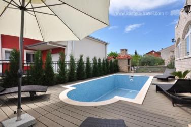 Kuća se nalazi u Kaštel Štafiliću u dijelu Resnik. U objektu je ukupno 5 apartmana, u našoj ponudi su 4 apartmana i jednu sobu. Apartman se sastoji od jedne spavaće sobe, kuhinje s dnevnim boravkom i kupatila. Gostima je na raspolaganju novo izgrađeni bazen.