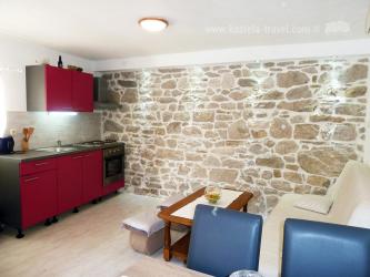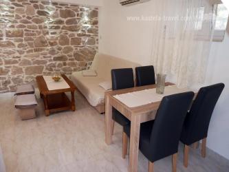 Kuća se nalazi u Kaštel Štafiliću samo 50 m od šljunčane plaže Gabine, gdje su tuševi i bar na plaži.Stan je na dvije etaže, u prizemlju je kuhinja s dnevnim boravkom, na katu su dvije spavaće sobe. U dnevnoj sobi je kauč koji služi kao dodatni ležaj za dvije osobe.