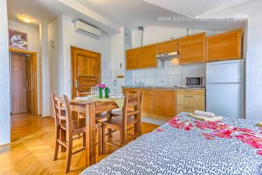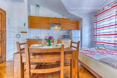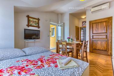 Apartmani Ivan se nalaze u blizini najljepše plaže u Kaštelima, plaže Bile. U kući je ukupno 4 apartmana, svi su tipa 2+2. Apartman A1 je na drugome katu i sastoji se od jedne spavaće sobe, kupatila i kuhinje s dnevnim boravkom gdje se nalazi kauć na razvlačenje. Gostima je na raspolaganju vanjski roštilj.