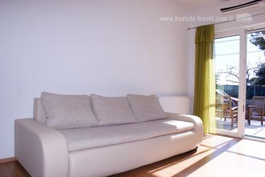 Apartman u obiteljskoj kući u Kaštel Štafiliću je pogodan za obitelj s djecom. Sastoji se od jedne spavaće sobe s bračnim krevetom, kupaonice te kuhinje koja je ujedno i dnevnim boravkom s kaučom na razvlaćenje za dvije osobe. Dom je od mora udaljen samo 70m a na plaž pogodnu za djecu treba proći još oko 200m. Apartman je u prizemlju, s terasom i grilom. Kod vlasnika je moguće iznajmiti bicikle ili dogovoriti osobni trenink (cijena po dogovoru).