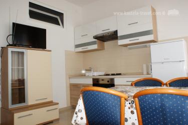Apartmani Jelena se nalaze u Kaštel Štafiliću, do najbliže šljunčane plaže od kuće je samo 250 metara. Apartman se nalazi u prizemlju i sastoji se od dvije spavaće sobe, kuhinje s dnevnim boravkom i kupatila. Ispred kuće ima terasu i vanjski roštilj koji je zajednčki.