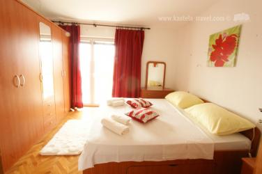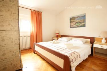 Apartman se nalazi na katu obiteljske kuće. Ima tri spavaće sobe, kuhinju i dnevni boravak koji su odvojeni. Kuća ima balkon s pogledom na more.