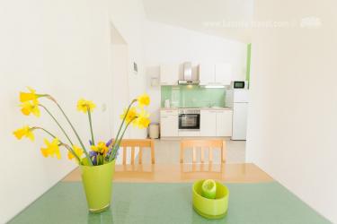 Kuća se nalazi u mirnom dijelu otoka Čiova u Okrugu Donjem. Apartman pruža neopisivi pogled na obližnje otoke i divno plavo more. Sastoji se od jedne spavaće sobe, kuhinje, odvojenog dnevnog boravka s velikim kaučom na razvlačenje i kupaonice. Iz dnevnog boravka se izlazi na terasu. U kući je ukupno dva apartmana, oba imaju vlastitu terasu a u prizemlju se nalazi velika zajednička terasa. Najbliža plaža od kuće udaljena je 80 metara, šljunčana plaža s plićakom za djecu je od kuće udaljena oko 8 minuta hoda. Udaljenost od trgovine, kafića, pošte i sl. je 4km. Gospođa Zdravka ima za svakoga gosta pripremljeno malo iznenađenje!