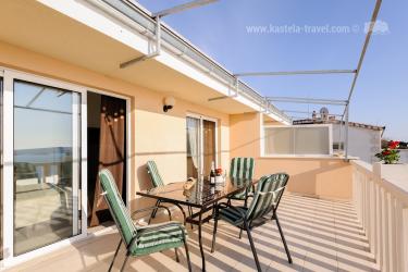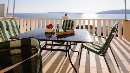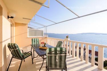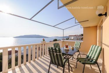 Kuća se nalazi u mirnom dijelu otoka Čiovo u Okrugu Donjem. Apartman pruža neopisivi pogled na obližnje otoke i divno plavo more. Sastoji se od jedne spavaće sobe, kuhinje spojene sa dnevnim boravkom i kupaonice. Iz dnevnog boravka se izlazi na terasu. U kući ima dva apartmana, od kojih oba imaju vlastitu terasu a u prizemlju se nalazi velika zajednička terasa. Najbliža plaža od kuće udaljena je 80 metara, šljunčana plaža s plićakom za djecu se nalazi oko 8 minuta hoda od kuće. Udaljenost od trgovine, kafića, pošte i sl. je 4km. Gospođa Zdravka ima za svakoga gosta pripremljeno malo iznenađenje.
