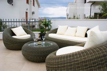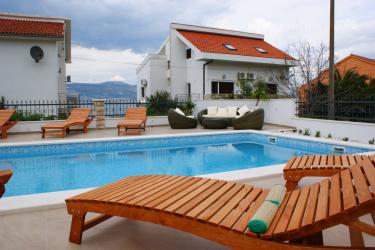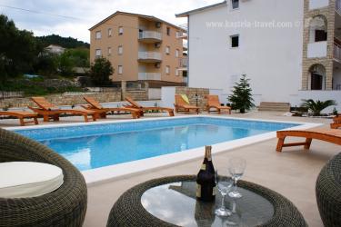 Kuća s bazenom se nalazi samo 70 metara od šljunčane plaže. Apartman se sastoji od dvije spavaće sobe, kuhinje s dnevnim boravkom i kupatila. Gosti imaju vlastitu terasu i zajedničko dvorište sa roštiljom a bazenom.