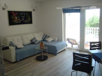 Kuća se nalazi u destinaciji Mimice samo 10 km o d grada Omiša. Moderno opremljen apartman se sastoji od dvije spavače sobe, dnevnog boravka a kuhinje i kupatila. velika terasa površine 55 m2 pruža divan pogled na more.