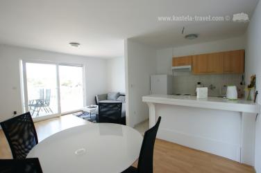 Kuća se nalazi u Rogoznici, u mirnom djelu samo 20 metara od šljunčane plaže. U kući ima ukupno 4 apartmana. Apartman A4 ima jednu spavaću sobu, kupatilo i veliki dnevni boravak s kuhinjom. Apartman ima svoju terasu s pogledom na more.